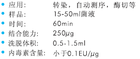 無內(nèi)毒素中量提取試劑盒將快速過濾器、中量硅膠吸附柱和獨特的內(nèi)毒素吸附液Buffer ETR相結(jié)合起來,適合于從25-50ml培養(yǎng)過夜的細(xì)菌培養(yǎng)液中純化高達(dá)250µg低內(nèi)毒素的質(zhì)粒DNA,內(nèi)毒素含量小于0.1EU/ug。純化的質(zhì)??芍苯佑糜跍y序、細(xì)胞轉(zhuǎn)染、動物注射、酶切等各種用途。質(zhì)粒的產(chǎn)量依賴于質(zhì)粒的拷貝數(shù)、E.coli 菌株以及生長條件,一般30ml攜帶高拷貝質(zhì)粒的E.coli LB過夜培養(yǎng)液可以純化出100-250µg質(zhì)粒DNA,對于低拷貝菌株一次操作量可以高達(dá)100ml。