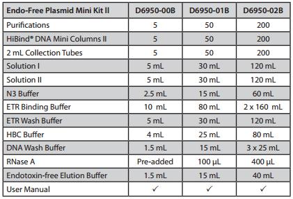 該試劑盒專門(mén)設(shè)計(jì)快速地從培養(yǎng)過(guò)夜的細(xì)菌中純化低內(nèi)毒素的質(zhì)粒DNA,內(nèi)毒素含量小于0.1EU/ug。純化的質(zhì)??芍苯佑糜跍y(cè)序、細(xì)胞轉(zhuǎn)染、動(dòng)物注射、酶切等各種用途。質(zhì)粒的產(chǎn)量依賴于質(zhì)粒的拷貝數(shù)、E.coli菌株以及生長(zhǎng)條件,對(duì)于低拷貝菌株一次操作量可以高達(dá)100mL。