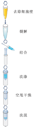 一般來說,酵母質粒的拷貝數較低,5.0ml過夜培養(yǎng)液中質粒DNA產量約為1.0 µg左右。純化的質??芍苯佑糜诿盖?,PCR,電轉化等應用。酵母收集后,加入破壁酶和玻璃珠去除細胞壁,用傳統(tǒng)堿裂法裂解細胞,然后將獲得的上清液轉移至結合柱結合DNA,經過兩次快速洗滌,最后用無菌水洗脫出質粒DNA。