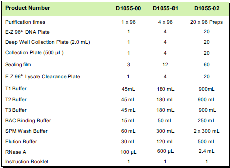E-Z 96® Fastfilter BAC/PAC DNA Kit提供了快速、可靠、高通量純化出BAC/PAC/P1等大型質(zhì)粒DNA的方法,采用堿裂解方式裂解細(xì)胞后通過E-Z 96® Lysate Clearance Plate進(jìn)行去除菌裂解液中的雜質(zhì),然后通過E-Z 96® DNA Plate進(jìn)行純化BAC/PAC/P1等大型質(zhì)粒DNA。