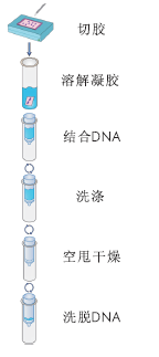 DNA產(chǎn)物經(jīng)瓊脂糖凝膠電泳分離后,切出所需的DNA片段,然后加入結(jié)合液溶解凝膠,溶解后轉(zhuǎn)移到HiBind®柱上離心吸附DNA,經(jīng)簡(jiǎn)單的洗滌后,用10-15µl無菌水洗脫DNA。純化的產(chǎn)物可用于T-A連接、PCR測(cè)序、酶切、各類型的標(biāo)記反應(yīng)等。