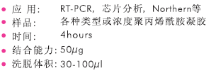 Poly-Gel RNA Extraction Kit采用硅膠柱純化方式,適合于從各種濃度各種類型的聚丙烯酰胺凝膠中回收RNA。純化過程無需用到有害的有機物萃取及乙醇沉淀,大大減少了操作時間,提高了RNA回收效率?;厥债a物可用于RT-PCR、Northern雜交等實驗。