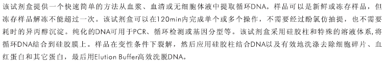 從1-4ml體積的血漿、血清和無細(xì)胞體液中提取循環(huán)DNA