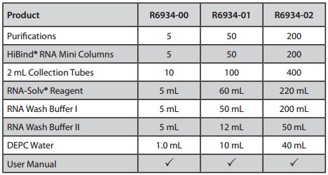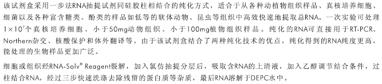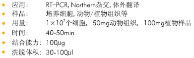 從1×107個(gè)真核細(xì)胞,50mg動物/100mg植物組織中提取高達(dá)100μg總RNA