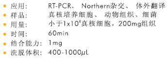 從1×108個細胞/200mg組織中提取高達1mg總RNA
