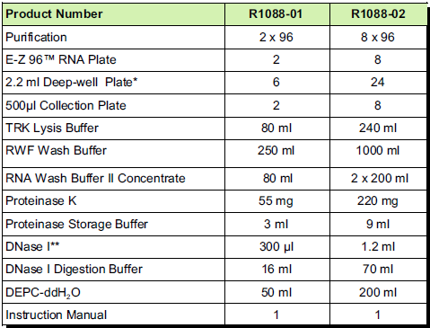 基于 E.Z.N.A.® Tissue RNA Kit (R6688)一樣的原理,該試劑盒專門設(shè)計(jì)高通量地從96個(gè)培養(yǎng)細(xì)胞樣品或富含纖維的動物組織樣品中提取總RNA。