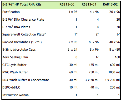 基于E-Z 96® HP Total RNA Kit I(R6812)一樣的原理,該試劑盒專門設(shè)計(jì)高通量地從96個培養(yǎng)細(xì)胞樣品或動物軟組織樣品中提取總RNA。每一個孔可處理高達(dá)1×106培養(yǎng)細(xì)胞或<10mg的動物軟組織。該純化系統(tǒng)帶有DNA過濾板,可高效去除DNA污染。純化的RNA可直接用于各種下游應(yīng)用。