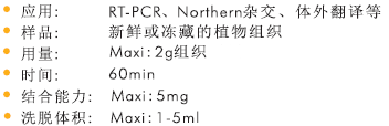 該方法采用了Omega公司的大量RNA結(jié)合柱,能快速簡(jiǎn)單地從小于2g新鮮或凍藏的植物樣品中提取高達(dá)2mg的高純度的總 RNA。提取過(guò)程不需要用到有毒的酚氯仿等有機(jī)物抽提,也不需要用到耗時(shí)的異丙醇或乙醇沉淀,純化的RNA幾乎不含有蛋白質(zhì)和糖酚類(lèi)等抑制因子的污染,可直接用于RT-PCR,Northern雜交和核酸保護(hù)等實(shí)驗(yàn)。