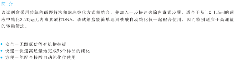 磁珠法無(wú)內(nèi)毒素質(zhì)粒小量提取試劑盒